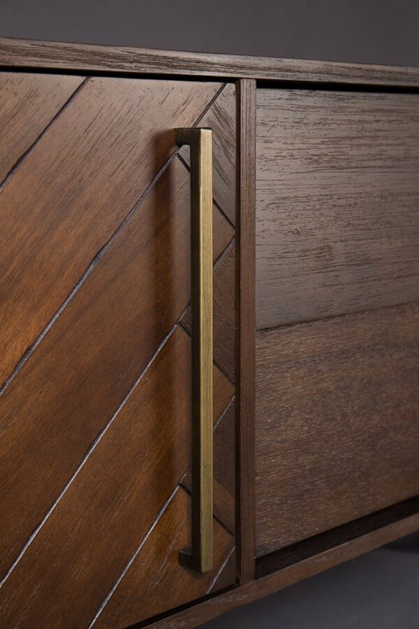 Sideboard of acacia wood with antique brass base. Dimensions: 1,80 X 45 X H60cm.