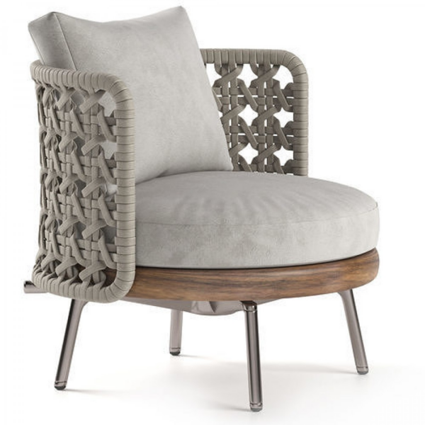 Η πολυθρόνα Torii Nest Out φέρνει τον κομψό σχεδιασμό του εσωτερικού χώρου στους εξωτερικούς, προσφέροντας μια εκλεπτυσμένη και αέρινη νότα σε κάθε υπαίθριο περιβάλλον. Η πλάτη της είναι πλεγμένη με κορδόνι από πολυπροπυλένιο σε χρώμα Ecru, ενώ το μαξιλάρι, επίσης σε Ecru, συνδυάζει τη ζεστασιά της άμμου με έναν σύγχρονο τόνο, δημιουργώντας ένα φιλόξενο και διαχρονικό αισθητικό αποτέλεσμα. Ο σκελετός στηρίζεται σε βάση από φυσικό τικ, ενώ τα βαμμένα πόδια από αλουμίνιο με γυαλιστερό χάλκινο φινίρισμα προσδίδουν μια μοντέρνα πινελιά.