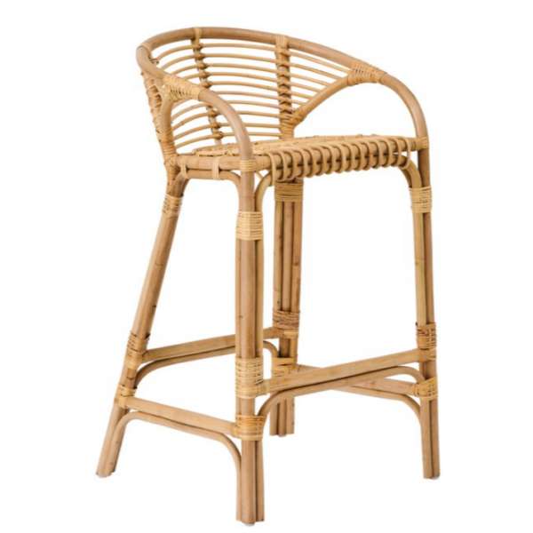 Κατασκευασμένο από ρατάν μαντόλας με λεία επιφάνεια και γοητευτική εμφάνιση. Οι γραμμές του σκαμπό δημιουργούν μια αέρινη και ανάλαφρη έκφραση, αναδεικνύοντας την κομψότητα και μια πινελιά χαλαρού τρόπου ζωής με την πρόσθετη επιλογή για να ακουμπάτε άνετα τα πόδια σας στο ενσωματωμένο στήριγμα ποδιών.